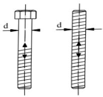 | 5 | ![]() | ●受拉螺栓的螺纹处母材连接板件应有足够的刚度,保证不产生撬力。否则受拉正应力应考虑撬力及其他因素产生的全部附加应力对于直径大于30mm螺栓,需要考虑尺寸效应对容许应力幅进行修正,修正系数γt:γt= (30/d)0.25d—螺栓直径,单位为mm | Z11 |
