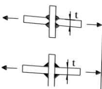 | 19 | ![]() | •十字型连接、T型连接(1) K形坡口、T形对接与角接组合焊缝处的母材,十字型连接两侧轴线偏离距离小于0.15t,焊缝为二级,焊趾角 $ \alpha\leq45\alpha $ (2)角焊缝处的母材,十字型连接两侧轴线偏离距离小于0.15t | Z6Z8 |