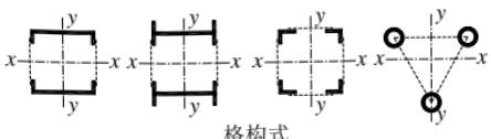 (a) 两个侧面腹杆体系 (b) 两个侧面腹杆体系 (c) 两个侧面腹杆体系